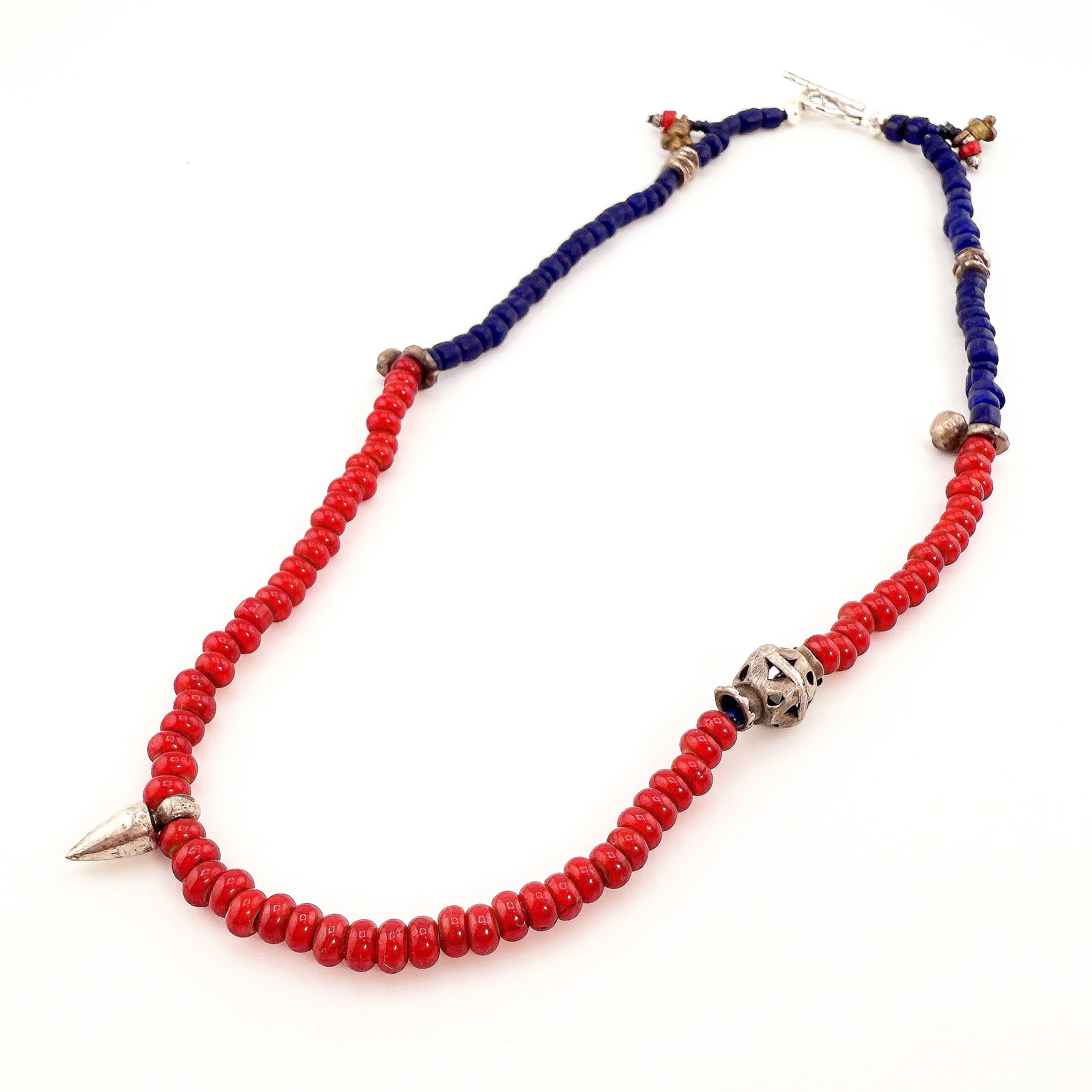 19. チベット・アンティークシルバーとアンティークビーズのネックレス