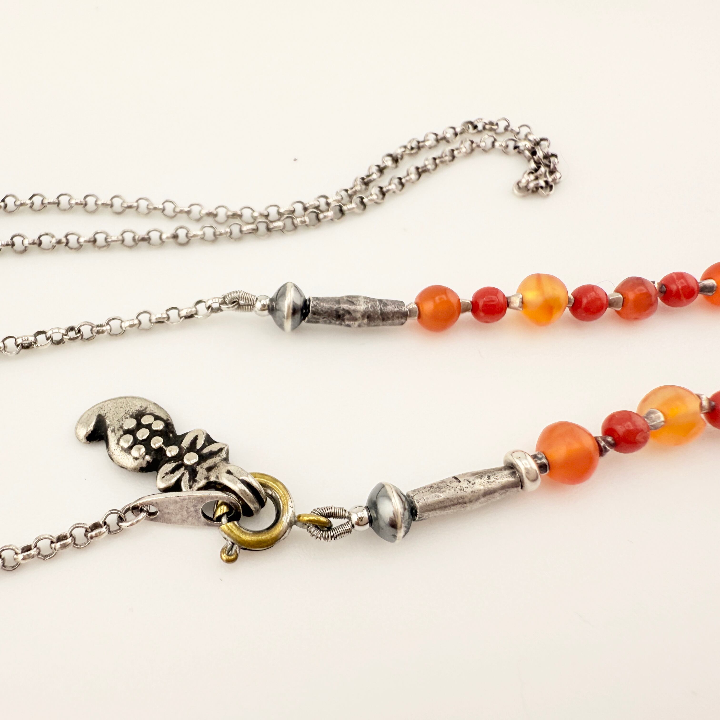 チベットアンティークシルバー、古代カーネリアン、珊瑚、ラピスラズリ、シルバーのネックレス