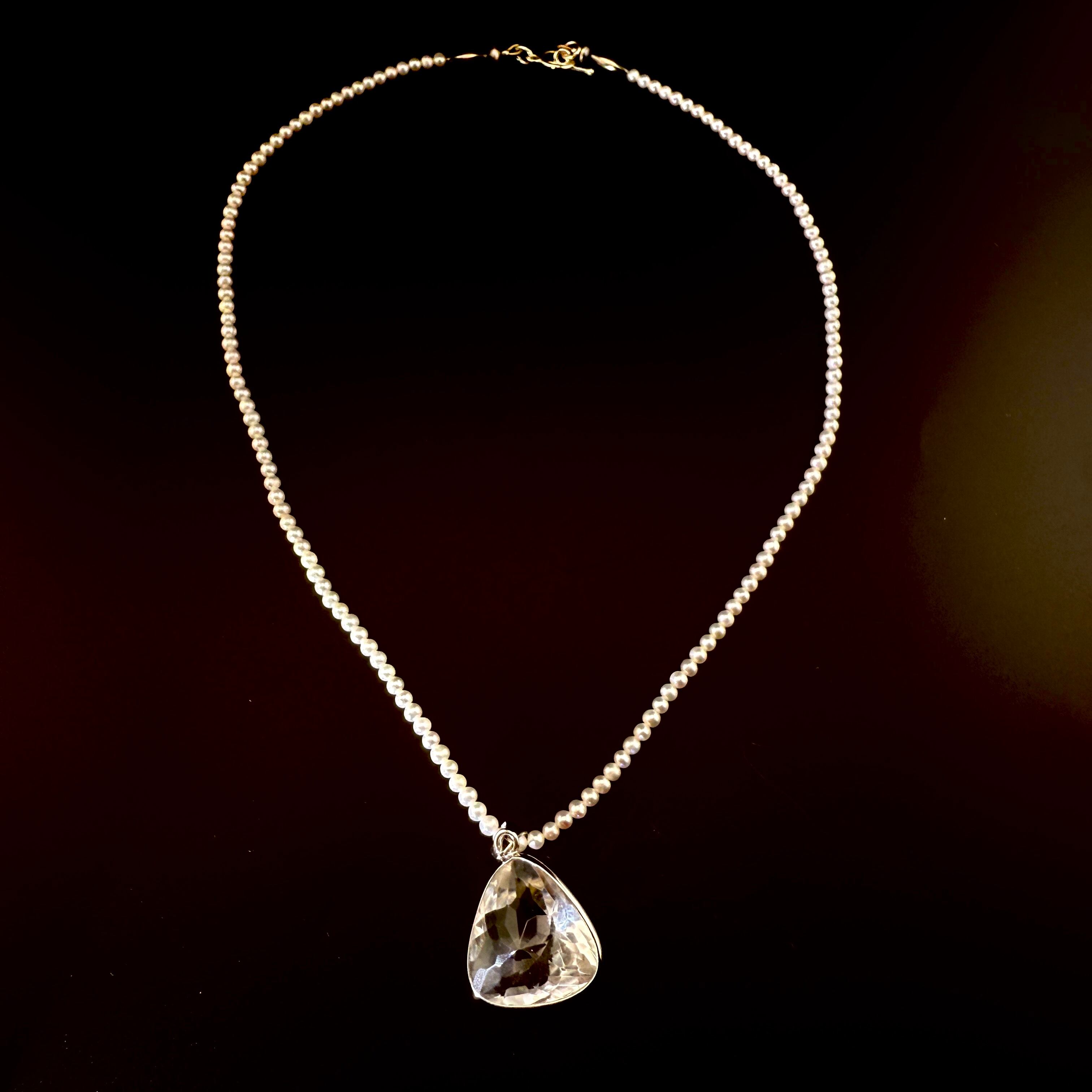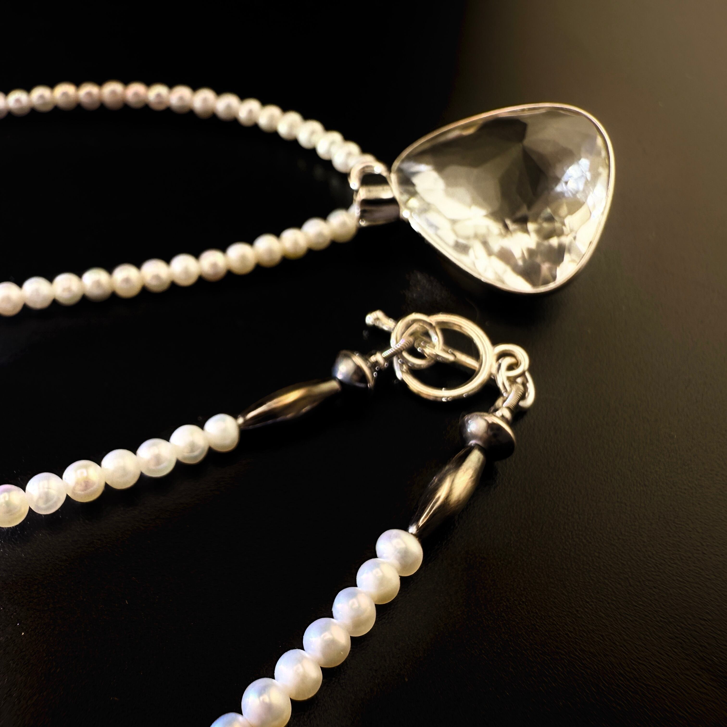 水晶と淡水ベビーパールのネックレス