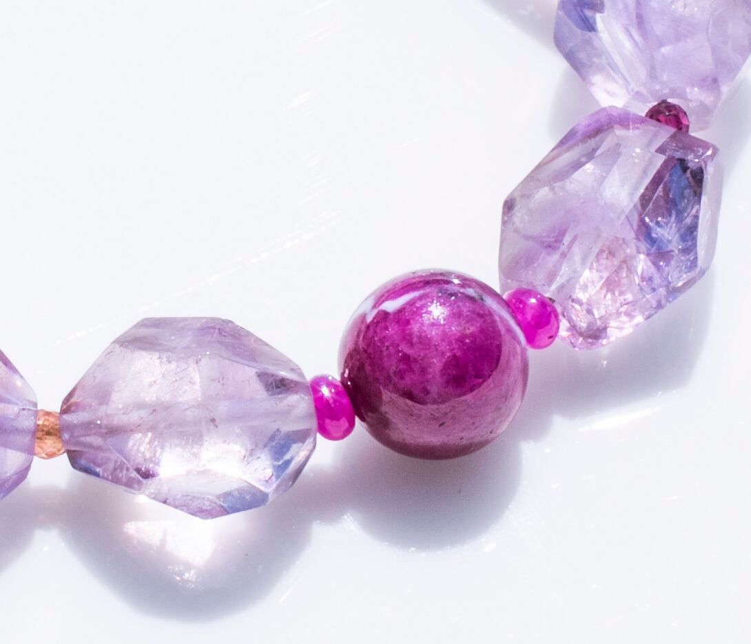 作品に使用した、アメジストは透明度の高い淡いパープルが特徴の宝石質のライトカラーアメジストです。