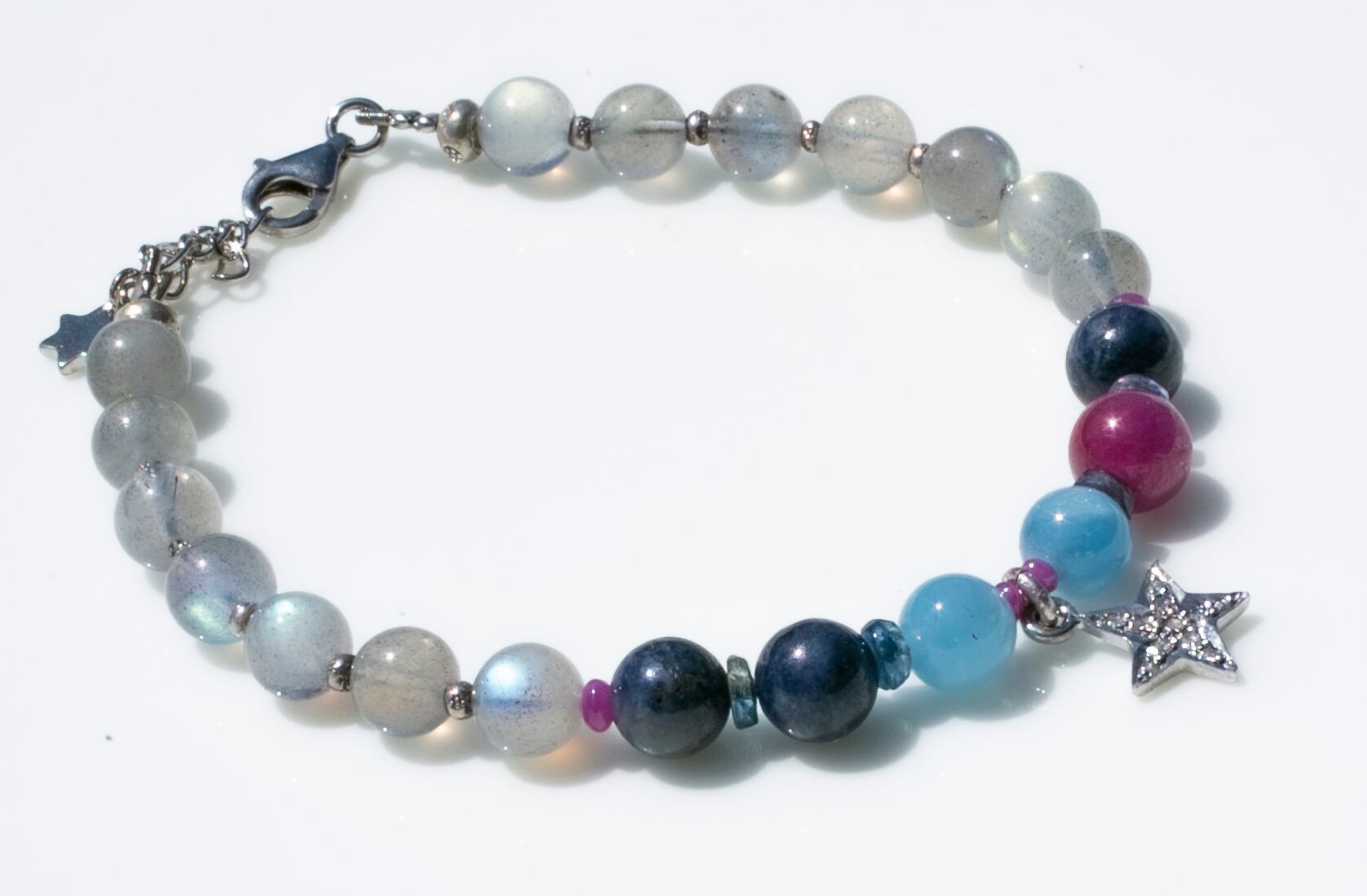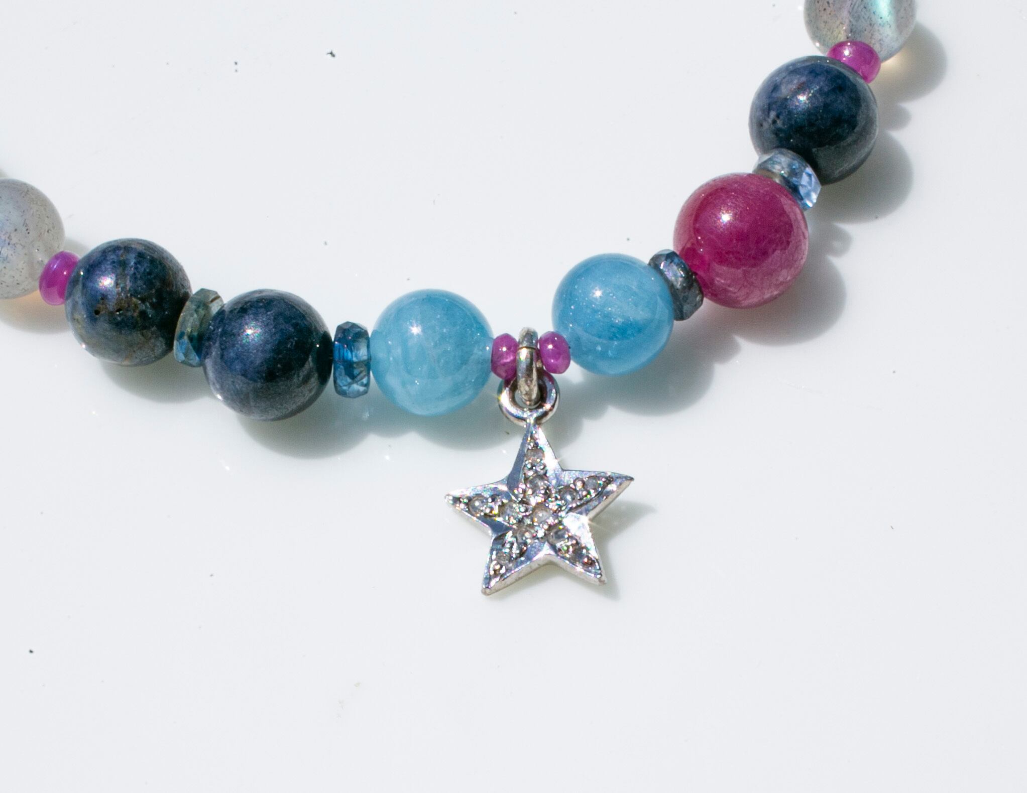 ダイヤモンド、アクアマリン、ルビー、サファイア、ラブラドライト、シルバー。