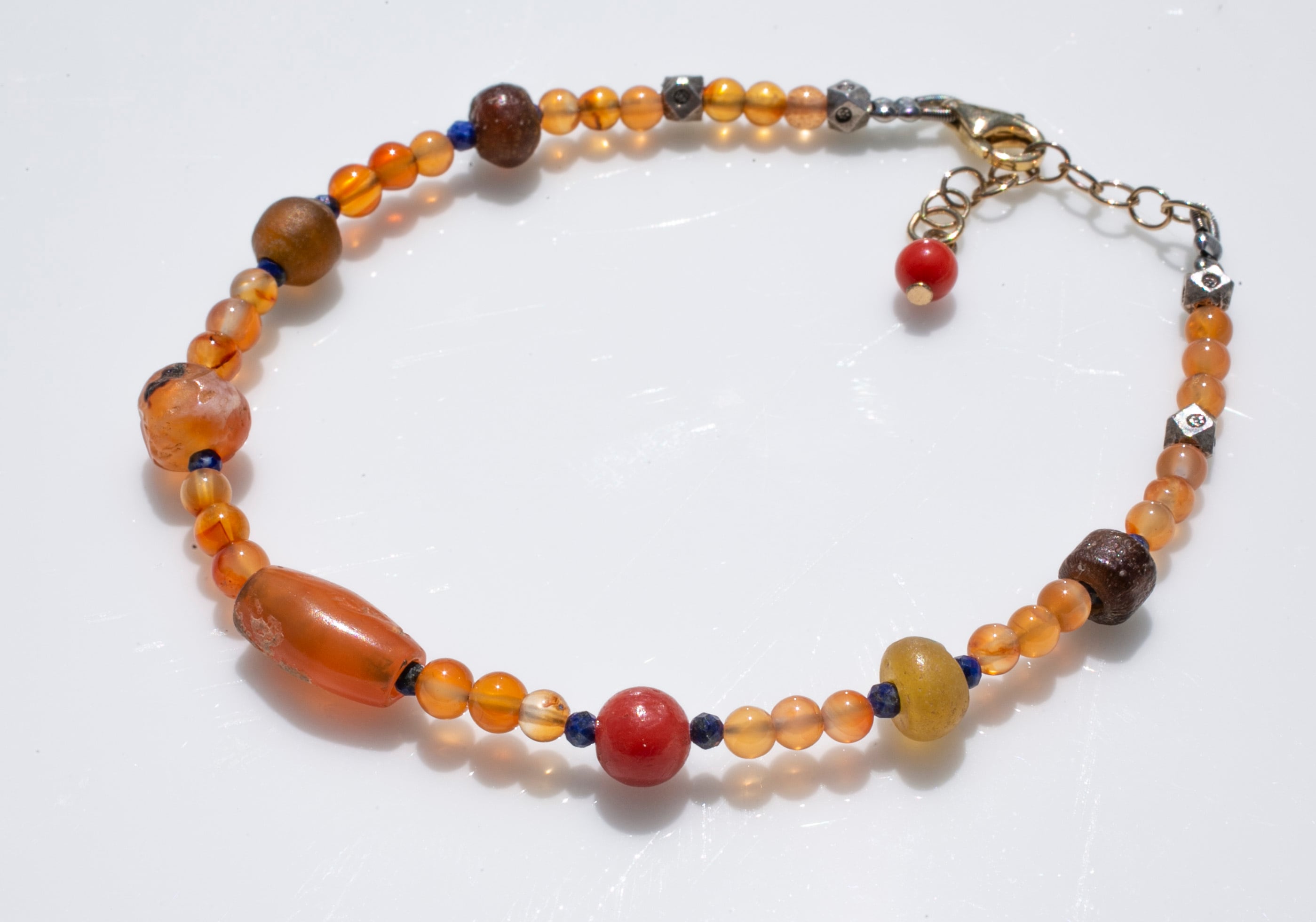 カーネリアン、山珊瑚、ローマンガラスビーズ。