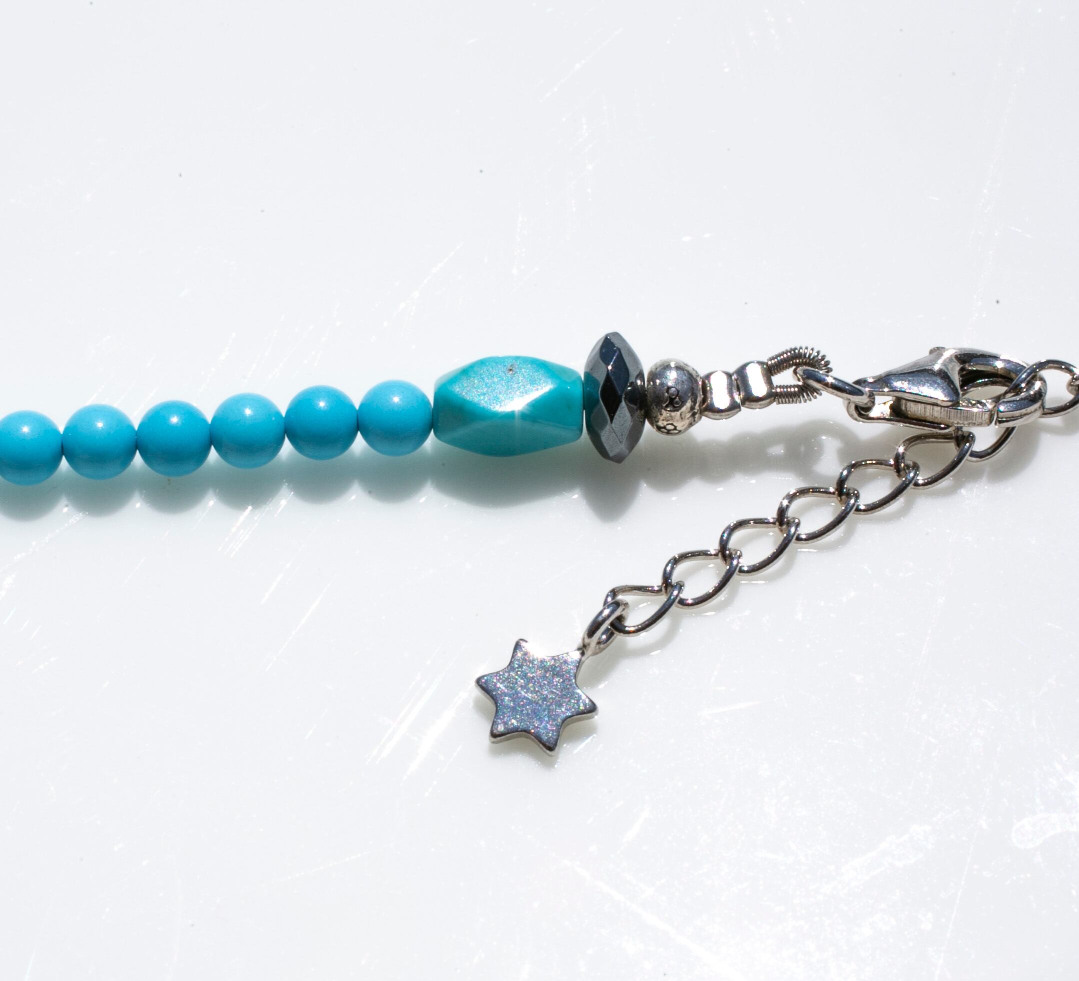 ターコイズ、ブラックドルマンインクォーツ、カレンシルバー、ヘマタイト。