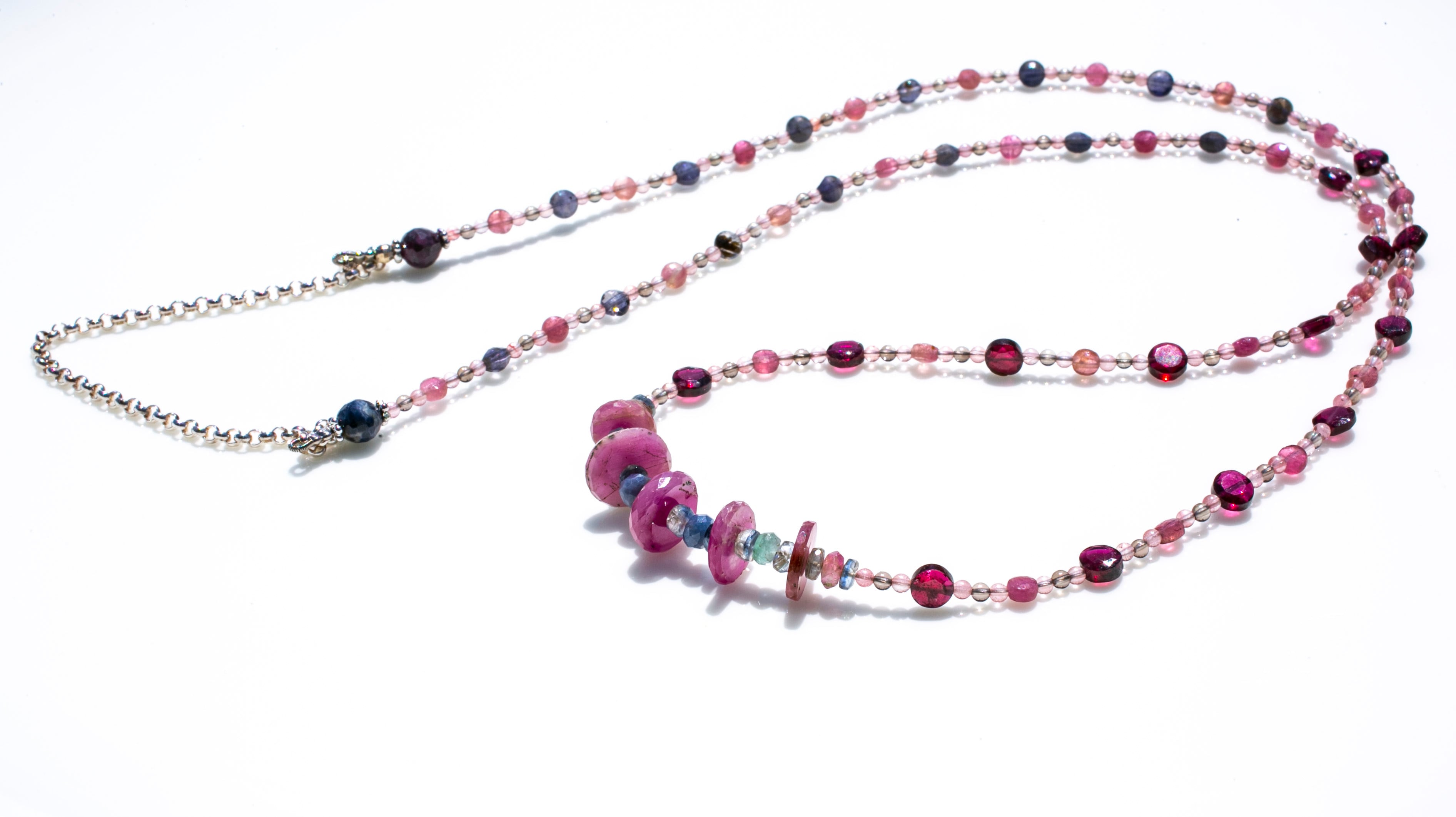 スピネル、ガーネット、スモーキークォーツ、ストロベリークォーツ、アイオライト、シルバー。