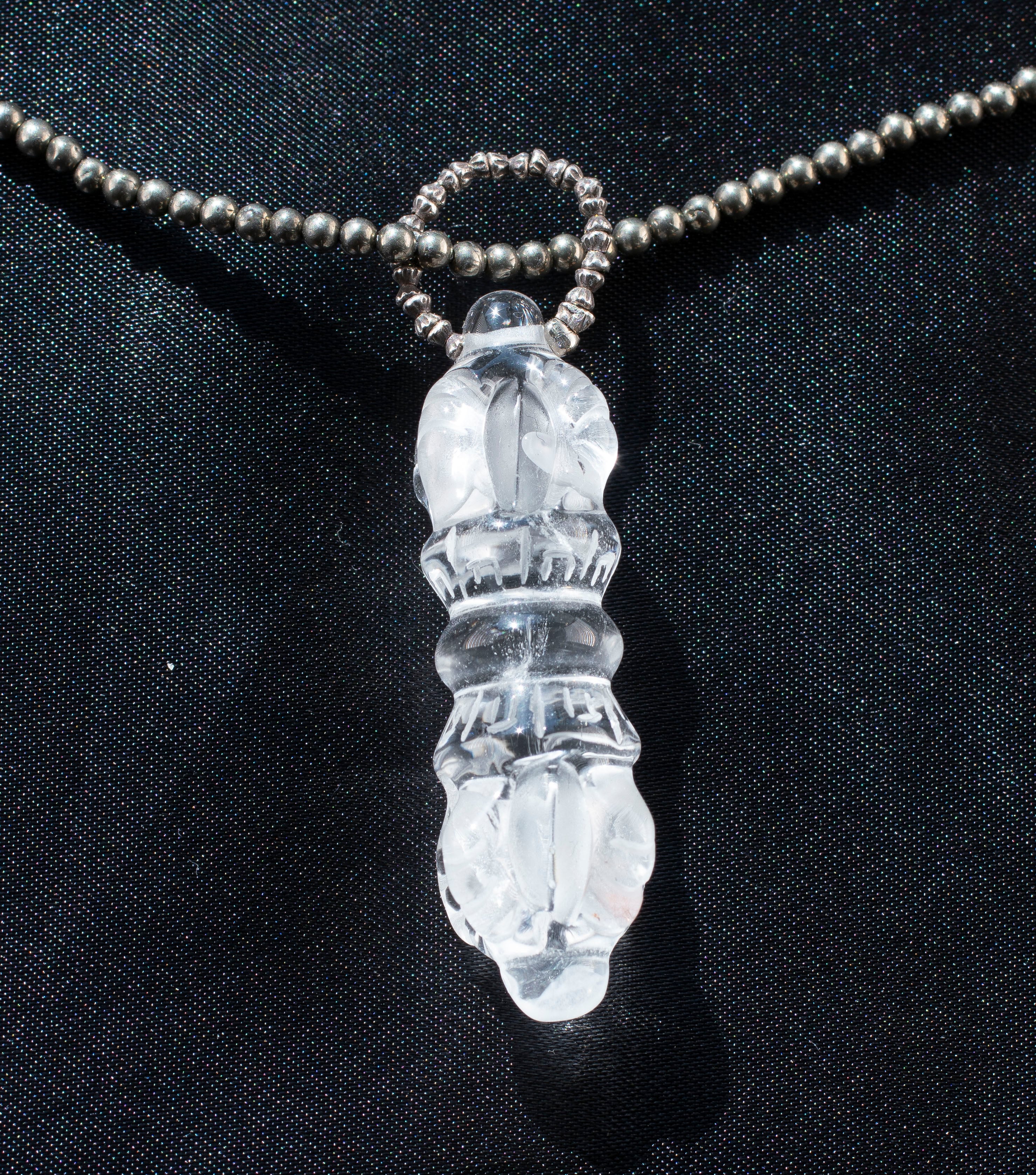 水晶で彫刻されたヴァジュラのペンダントトップとメテオライトのネックレス。