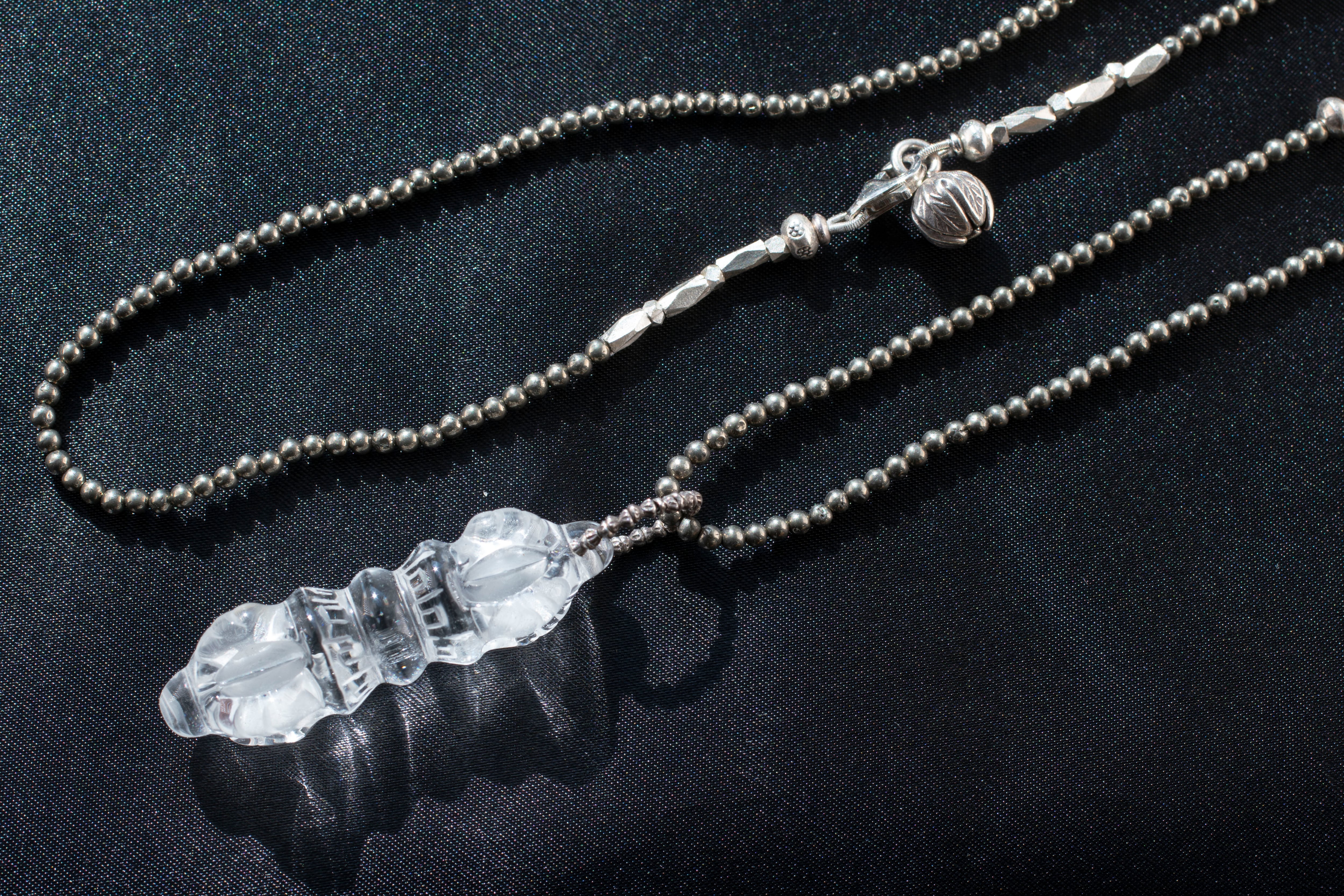 水晶ヴァジュラ彫刻のペンダントトップとメテオライトのネックレス