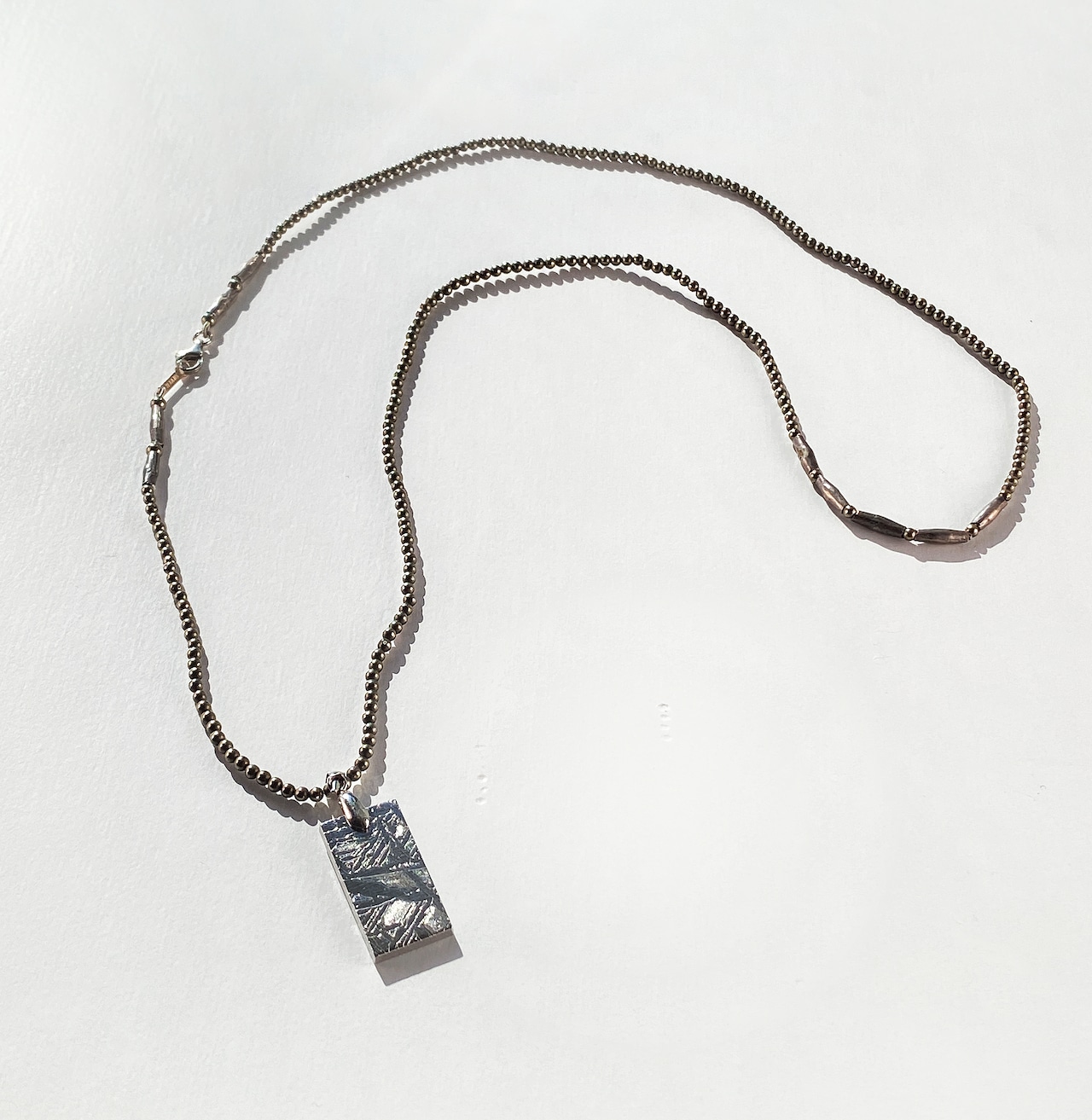 メテオライト隕石のペンダントトップと、パイライトのネックレスです。