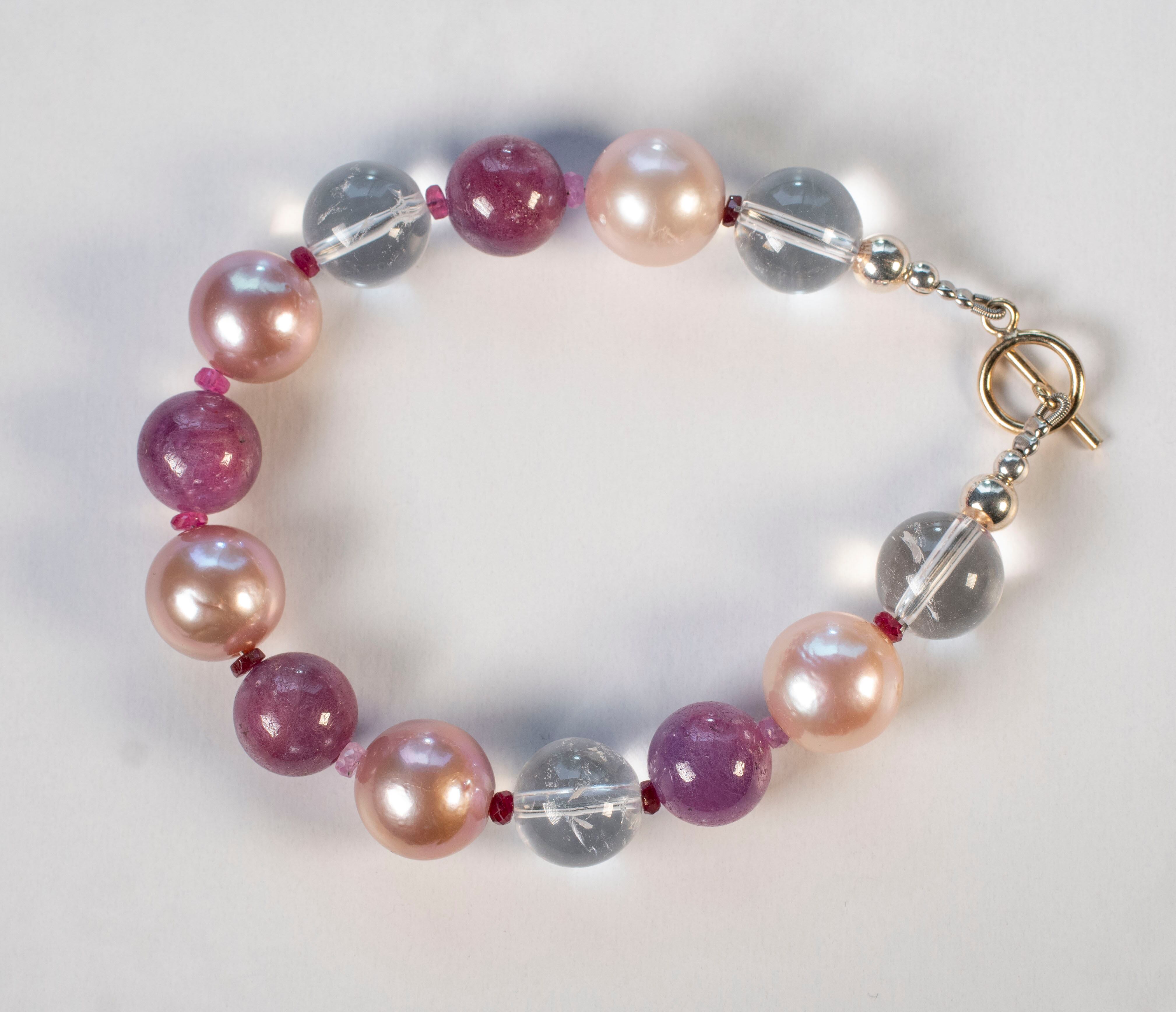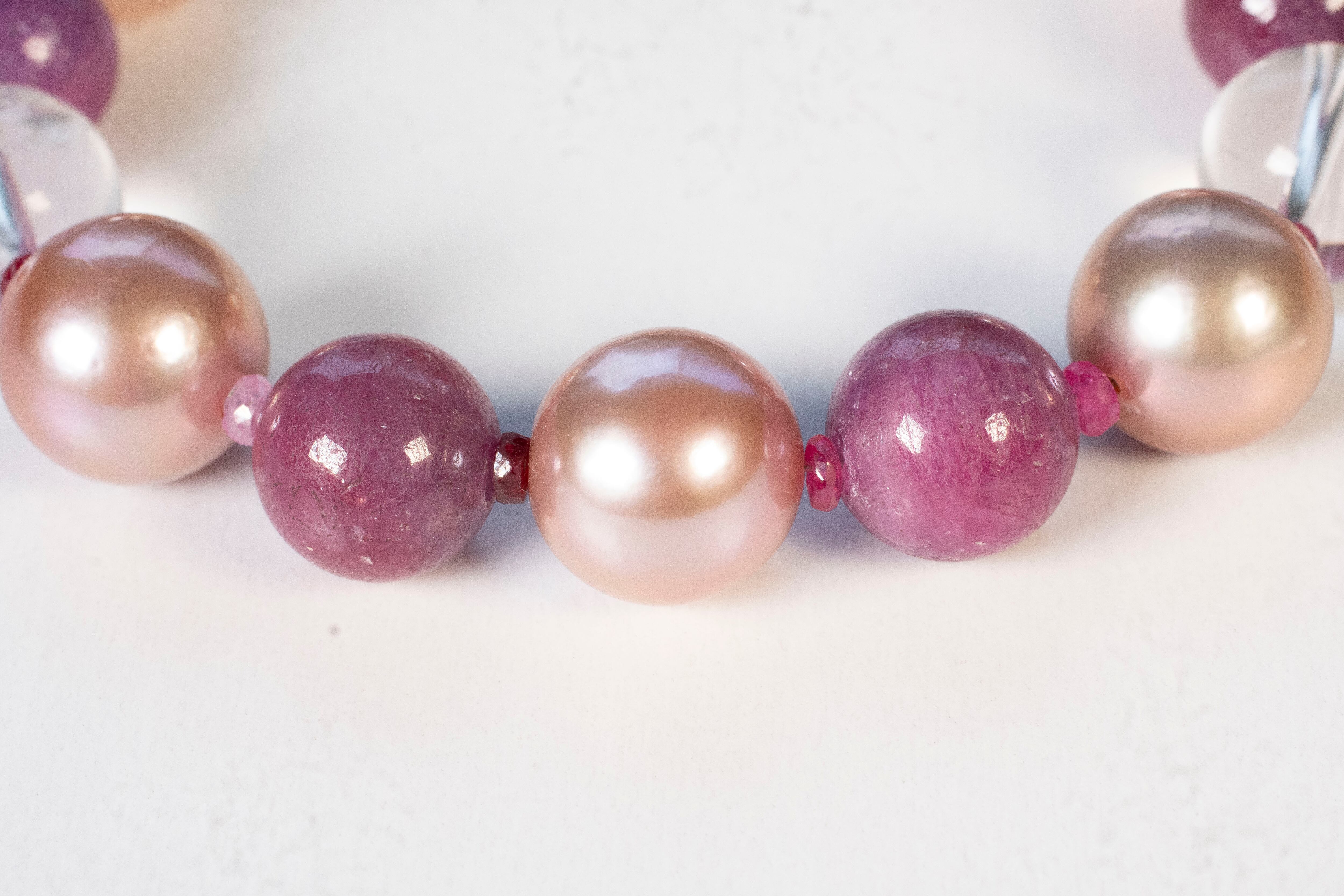 ルビー、淡水パール、ヒマラヤ水晶(10ミリ)を組み合わせました。