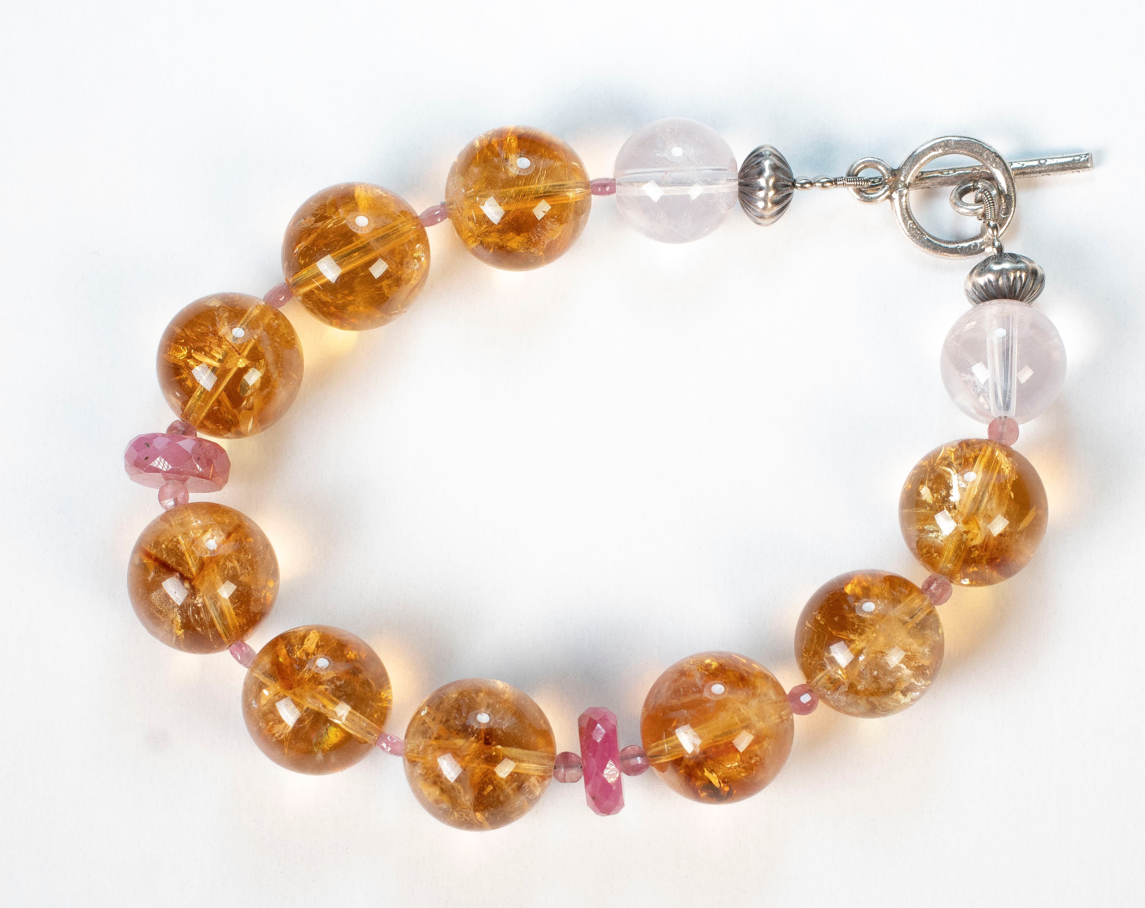 シトリン(12ミリ)をメインにピンクサフャイア、ロースクォーツを使いました。