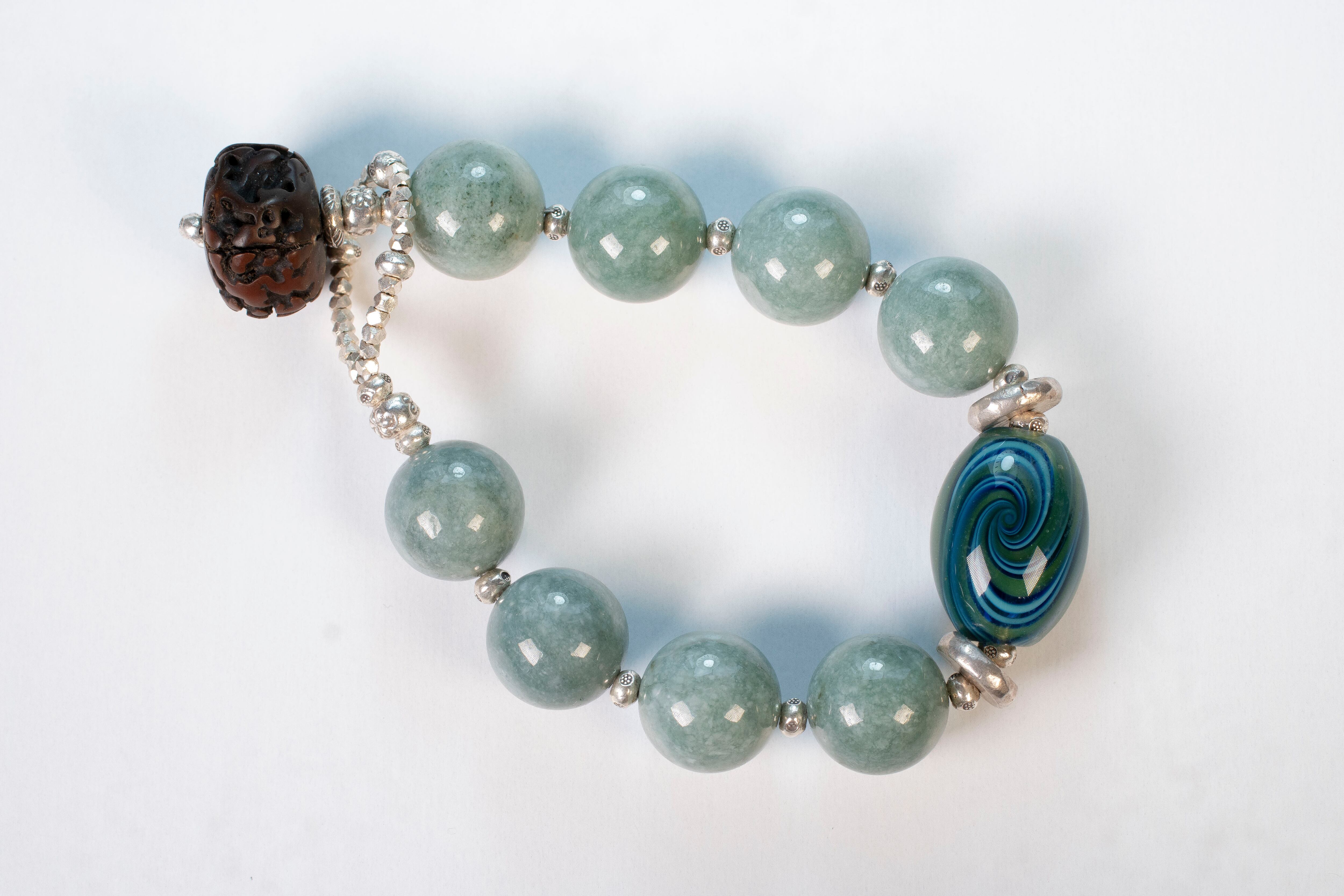 翡翠(16ミリ)とアンティーク金剛菩提樹を使ったブレスレット。