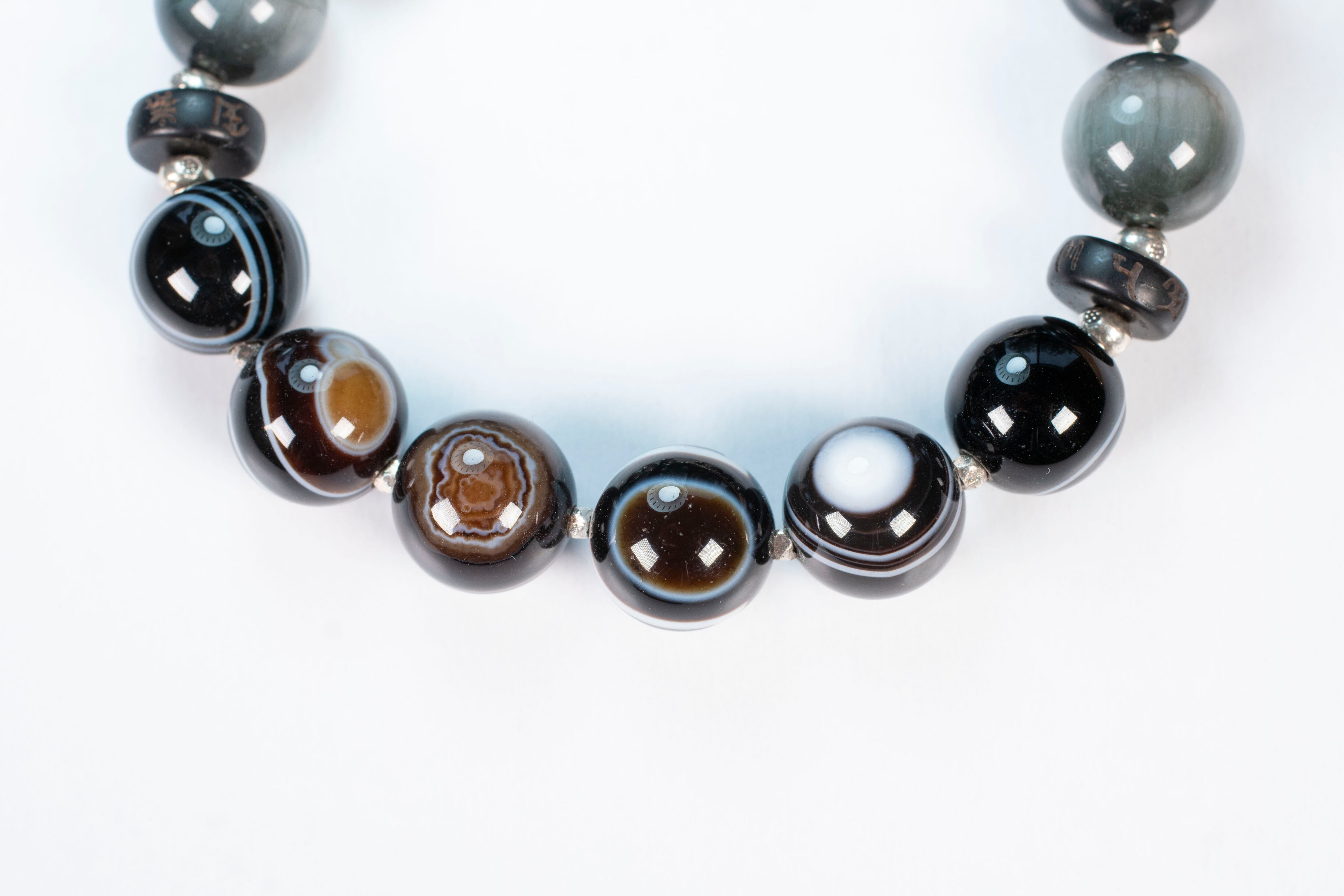 大粒の天眼石とイーグルアイ(12ミリ)と留め部分に貴重なアンティーク金剛菩提樹。