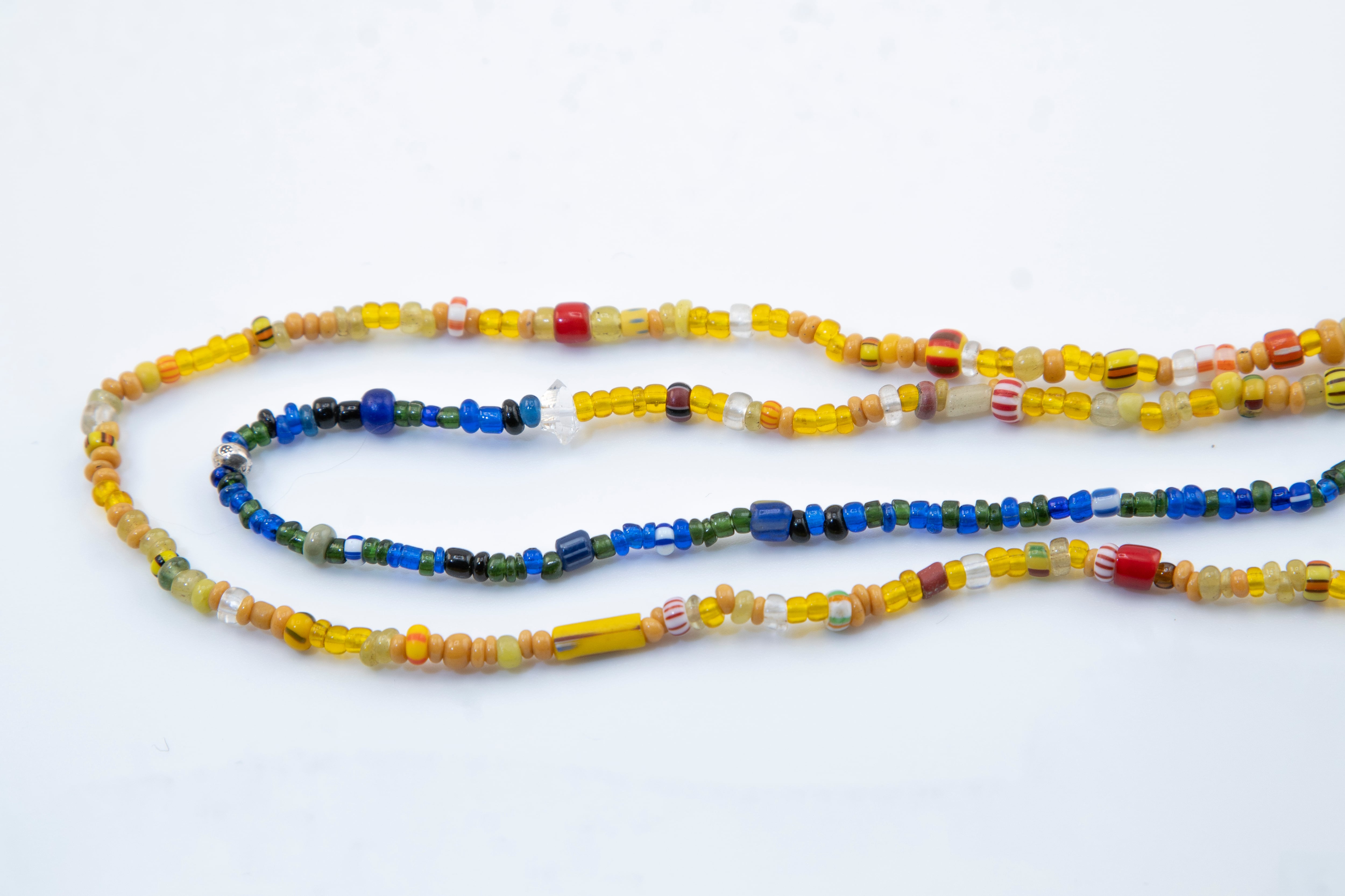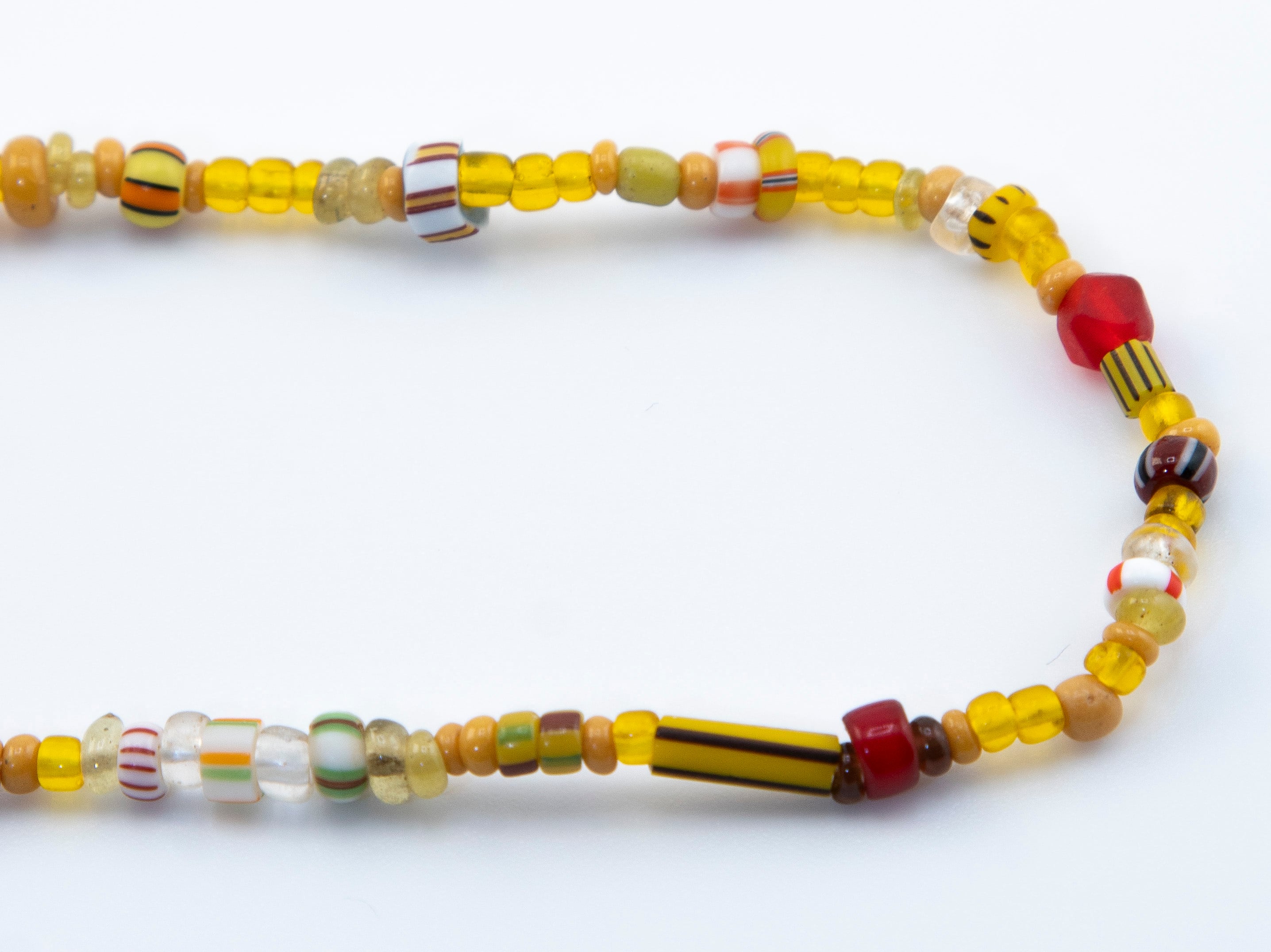 とても希少な黄色、青、赤などのカラフルなアンティークビーズ(アフリカ、アジア産)。
